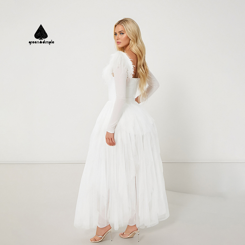 Green Dimple Custom Party Dress Evening Square Neck Long Dress Summer For Women Evening Dresses Ball Gown
