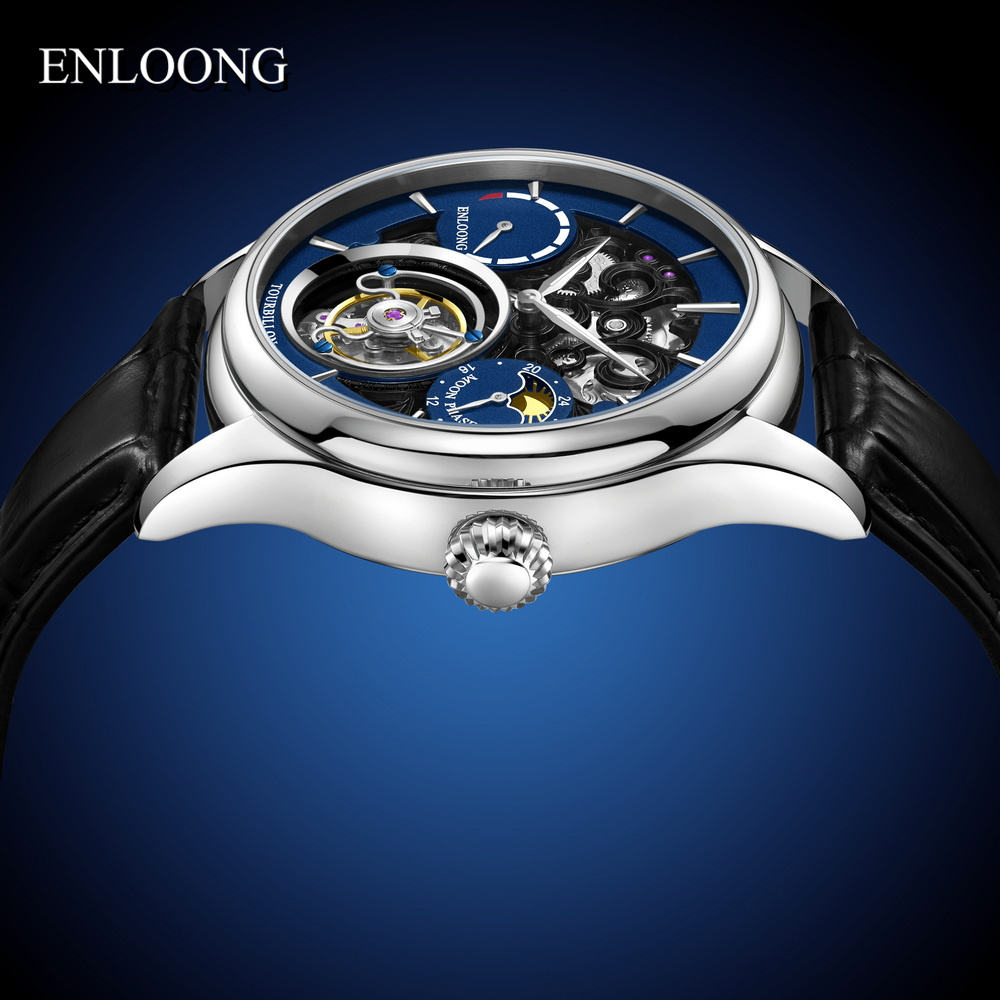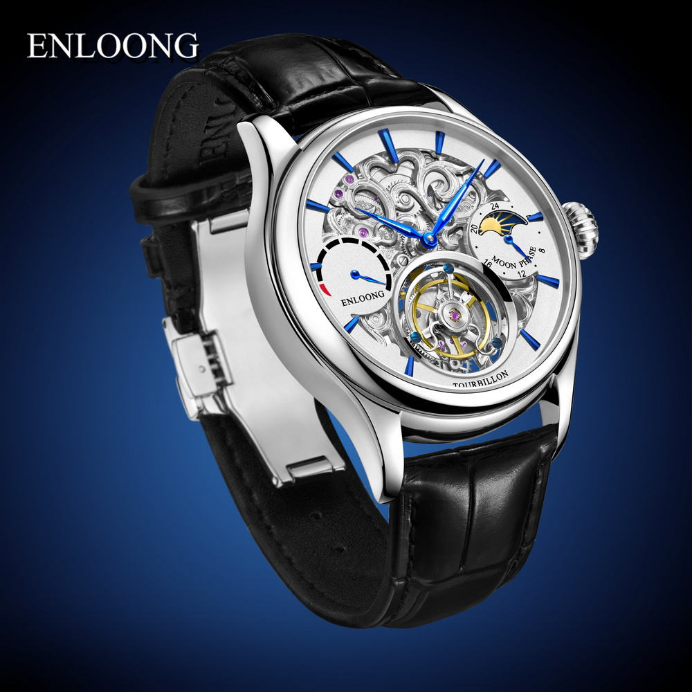 ENLOONG Best Affordable Luxury Tourbillon Watch Skeleton Premium Watches Power Display Moonphase Tourbillon Watch for Men