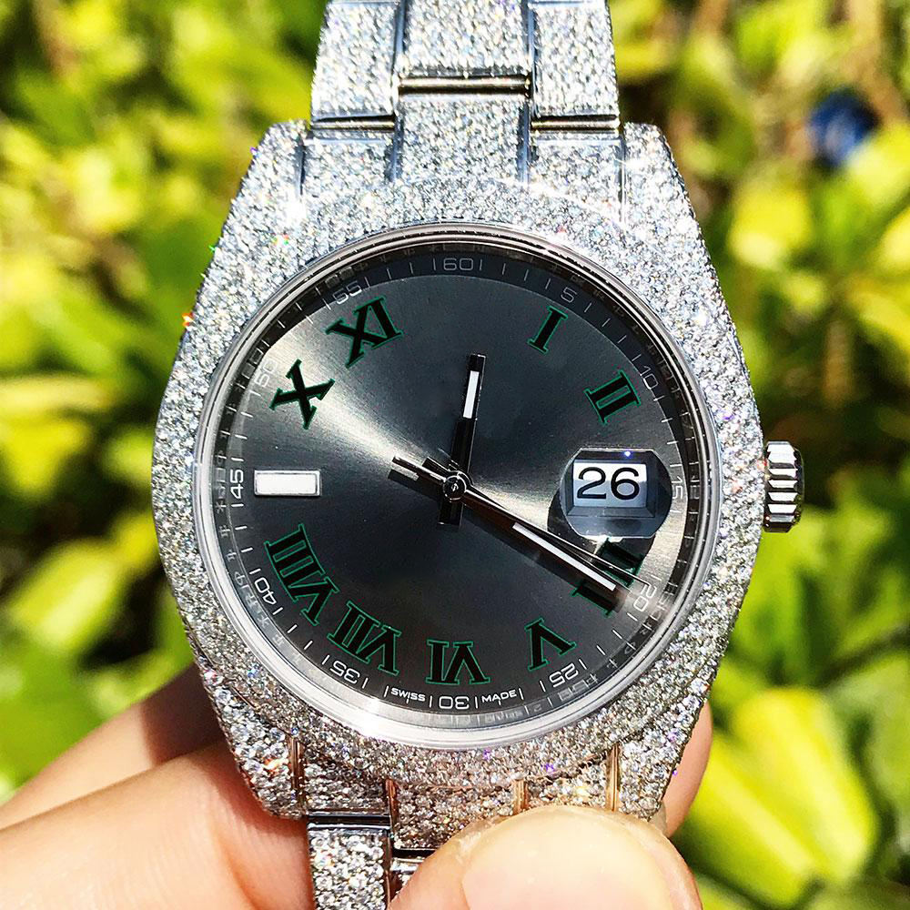Buy High Quality Captivating 41mm Green Dial Watch with Moissanite Diamond Latest Designed Hip Hop Watch Jewelry