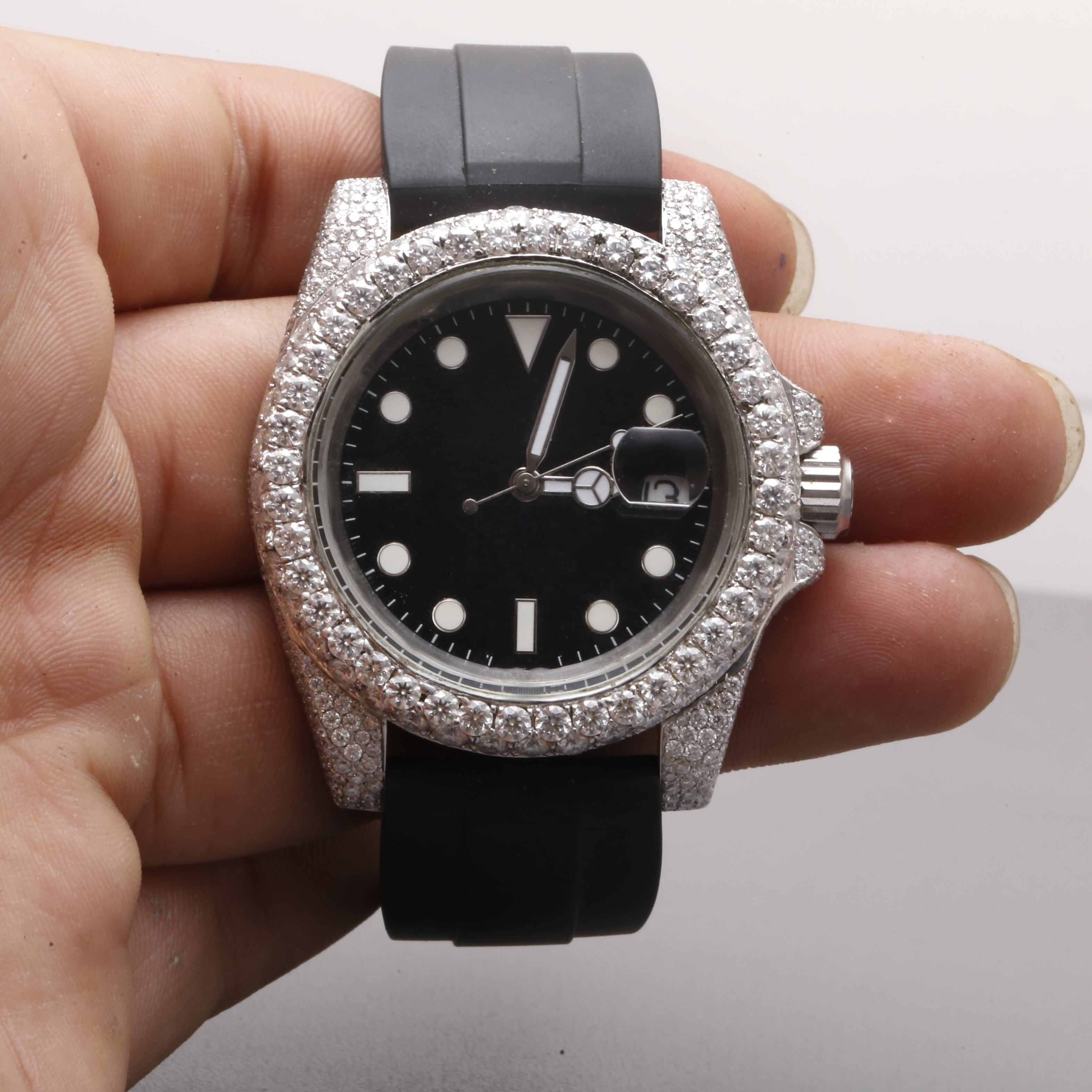 Original Branded Handmade Premium Quality ROUND DIAL HALF Iced Out Unisex Luxury Fine Jewelry Moissanite Diamond Watch