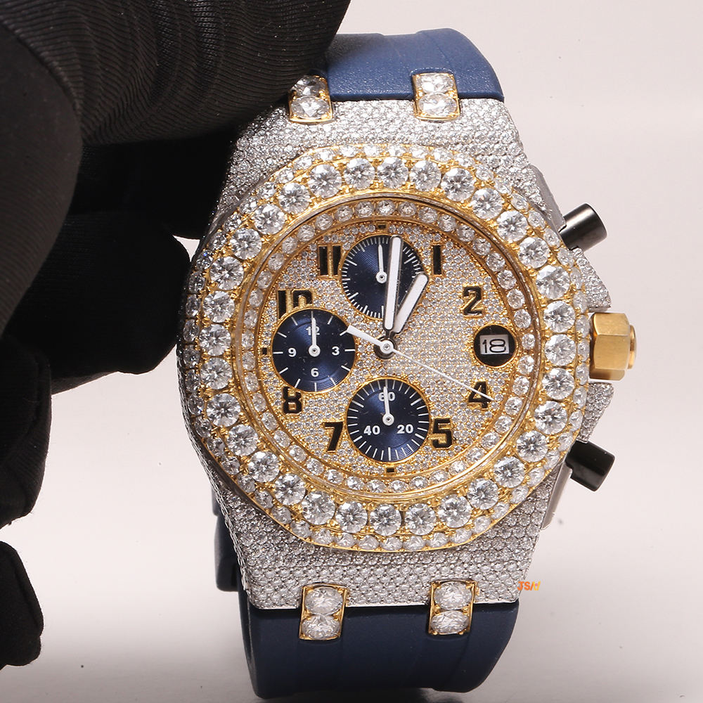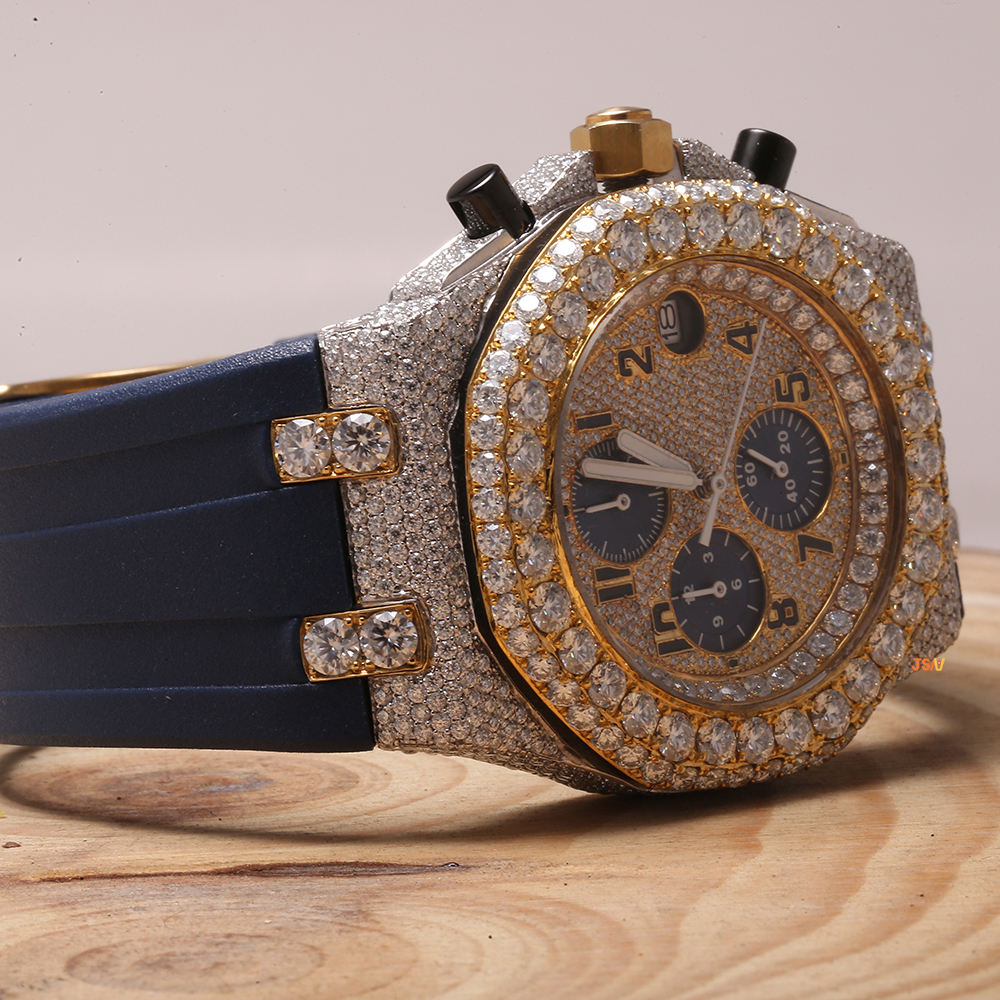 Sterling Silver Branded Handmade High Quality Automatic Setting Band Iced Unisex Luxury Fine Jewelry Moissanite Diamond Watch