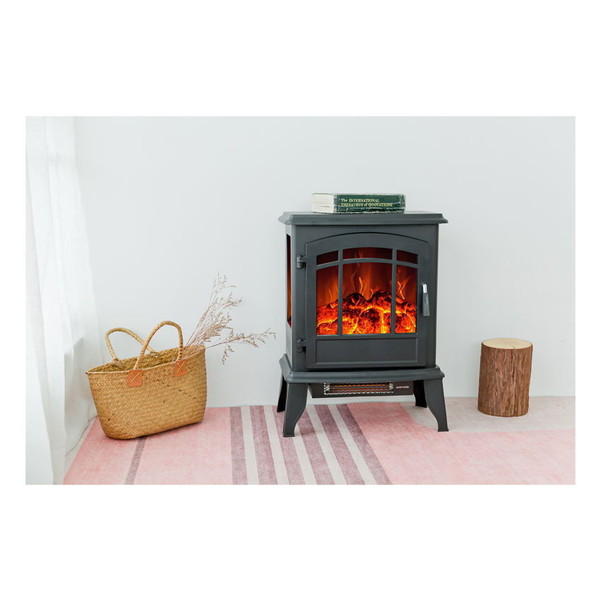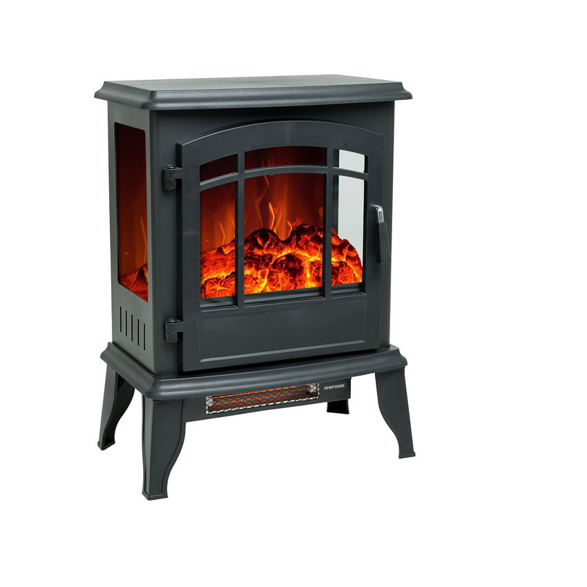 high quality indoor small modern decorative black 3 side freestanding self standing electric fireplace
