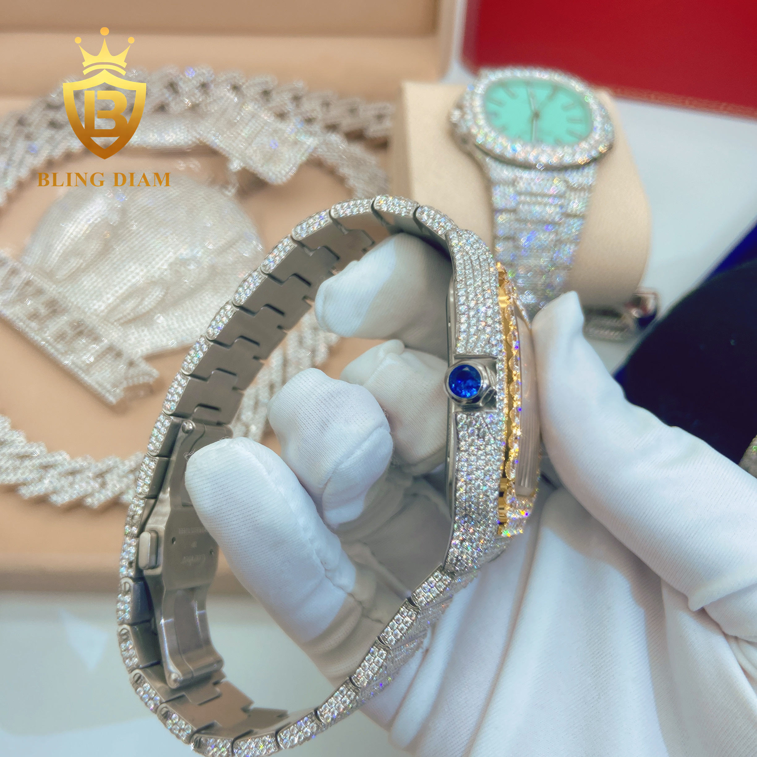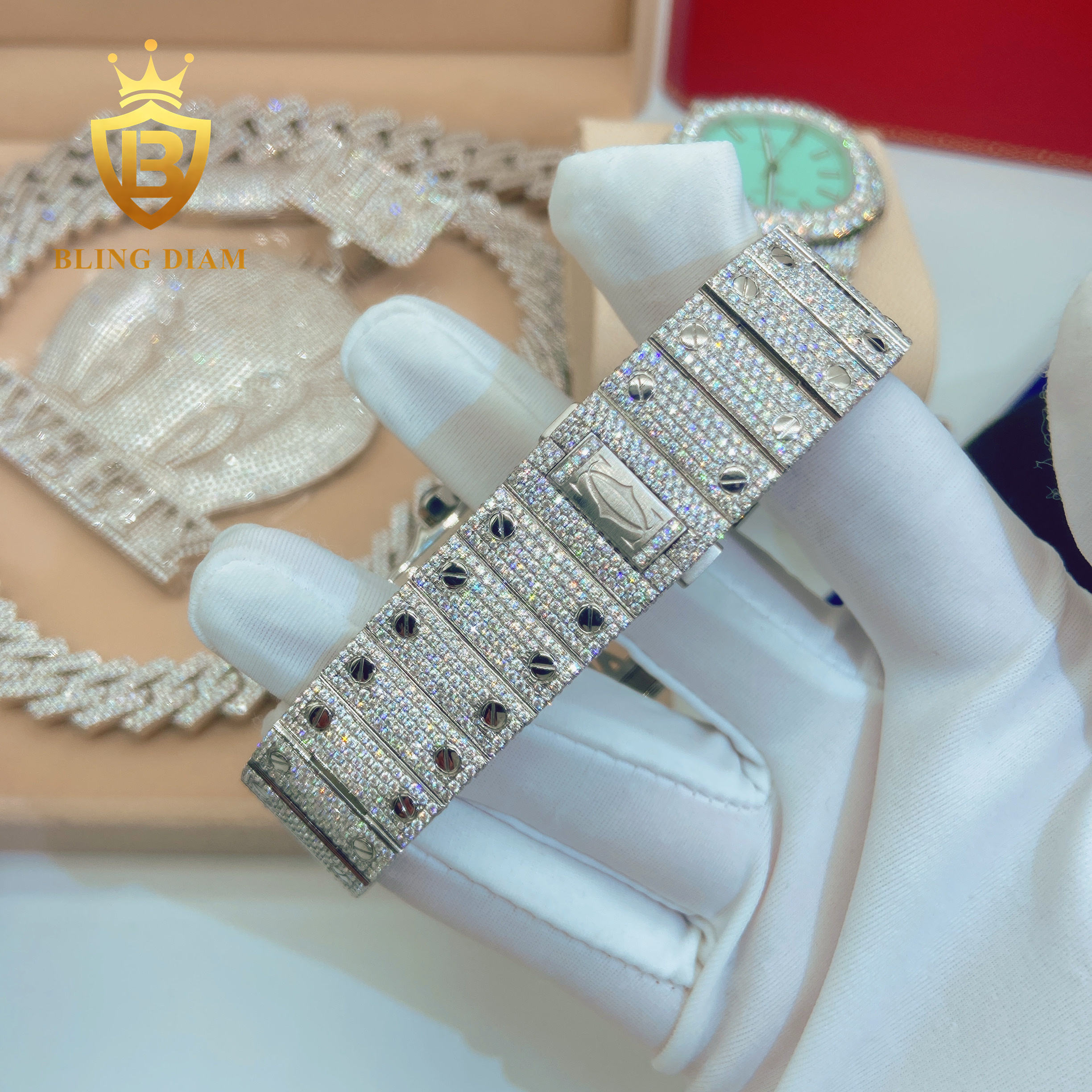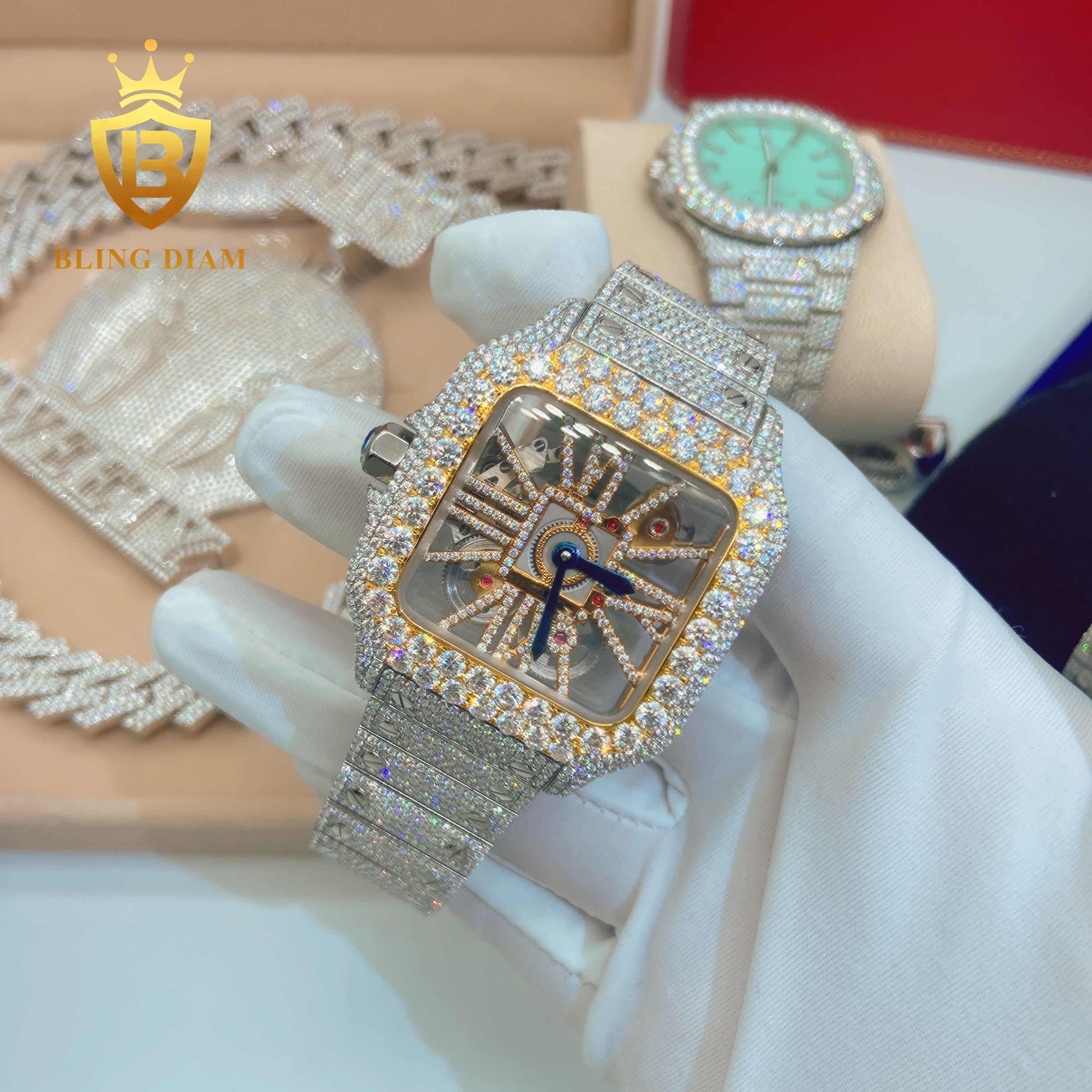 Iced out Pass diamond test Stainless Steel Mens Full Diamonsd Luxury Watch Mens hip hop jewelry Mechanical Moissanite Watch