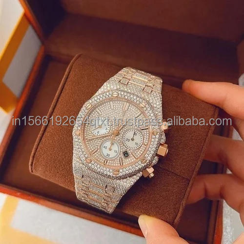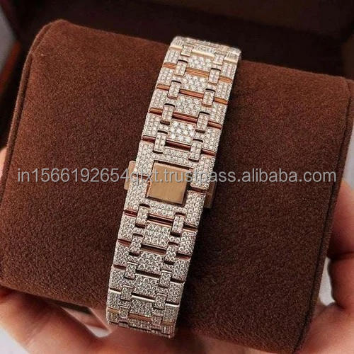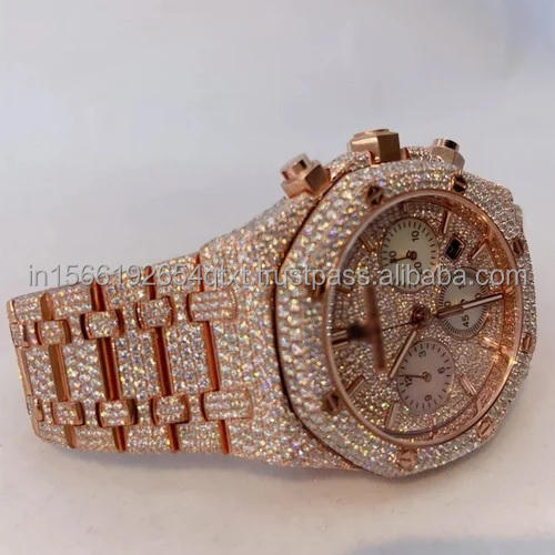 Gold Plated luxury bezel fully iced out moissanite diamond watch with hip hop style for gifting or business purpose from india