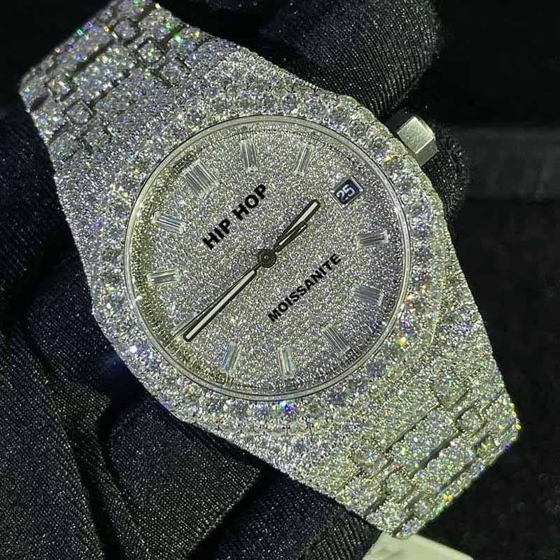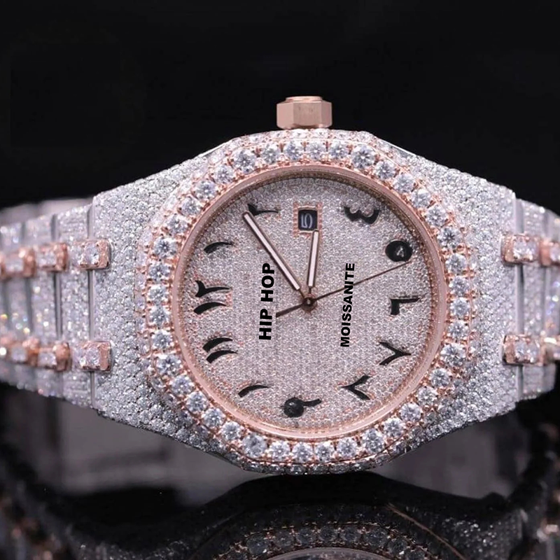 Luxury Statement Bezel Setting Golden Tone Automatic Moissanite Diamond Watches for Men's Premium Occasions