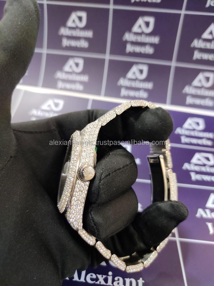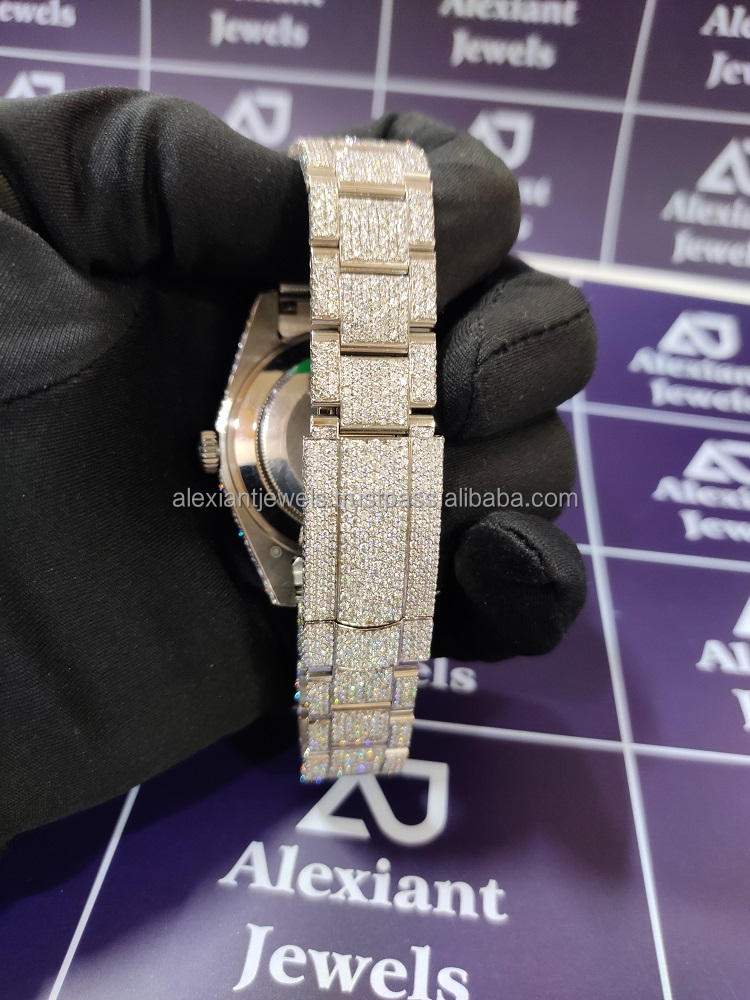 Best Selling Top Brand Luxury Bling Bust Down Full White Moissanite Diamond Micro Setting Wrist Watches at Wholesale Price