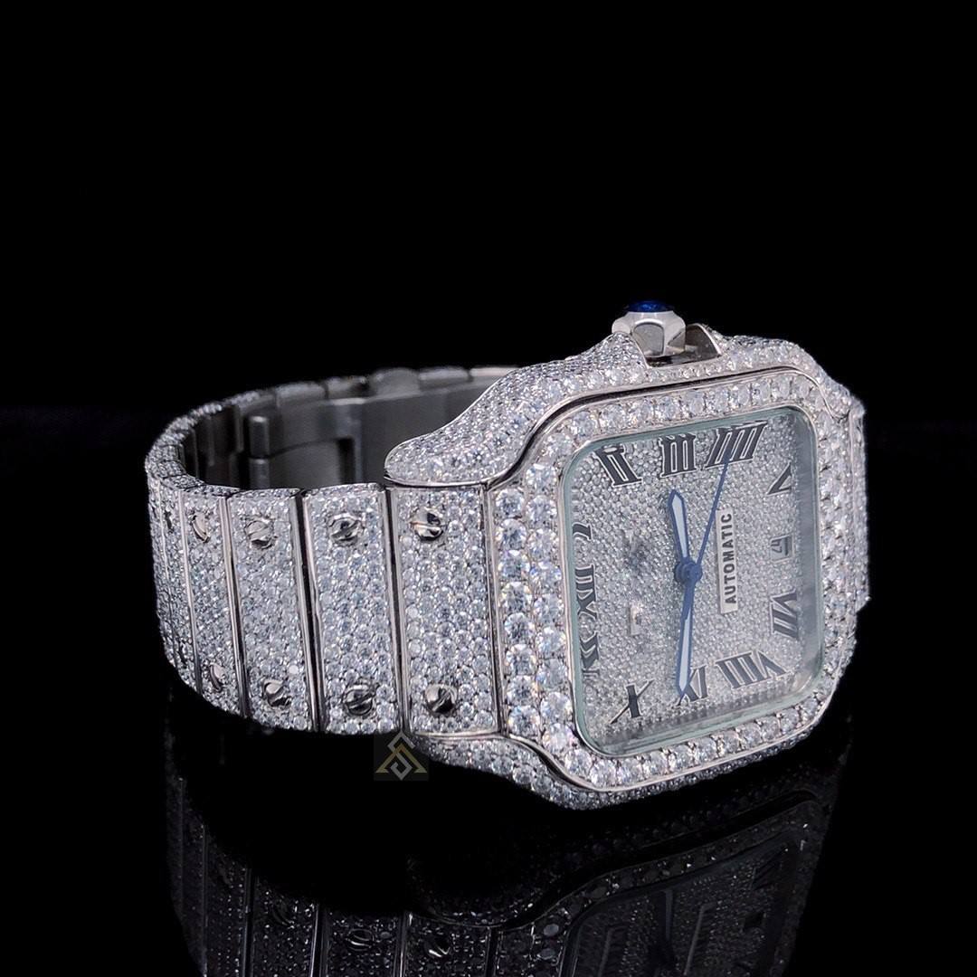 Custom Iced Out CVD Moissanite Diamond Mechanical Movement Watch Set Luxury Quartz Watches Diamond Bracelet Watch Bands Jewelry