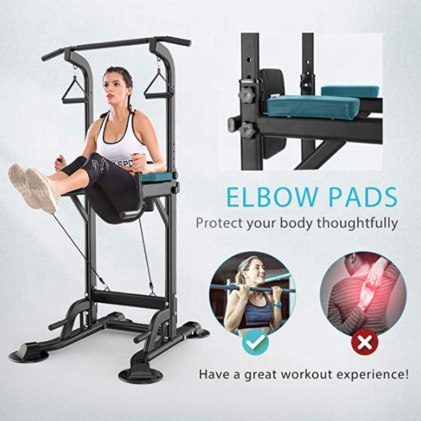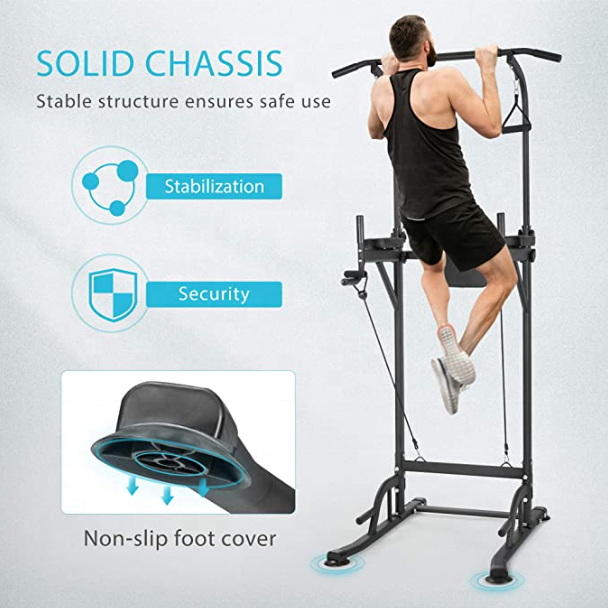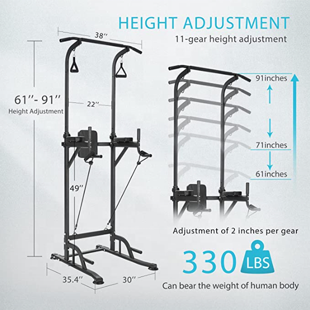 Adjustable Multi-Function Power Tower with Backrest Workout Dip StationFitness Strength Training Exerc