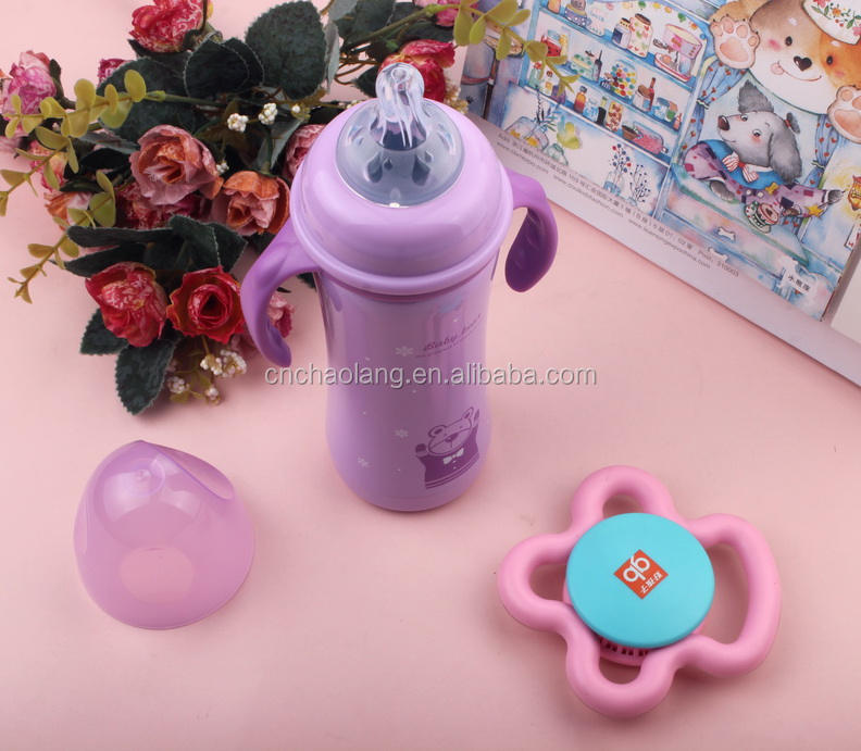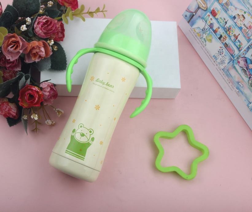 Eco Friendly 240ml and Baby Bottles Feeding PP Stainless Steel Print Pattern Baby Milking Maker Customized Color Yes Handle