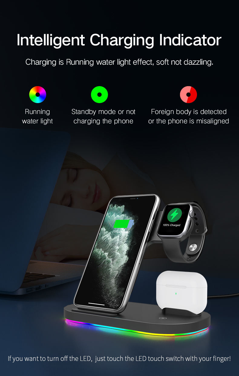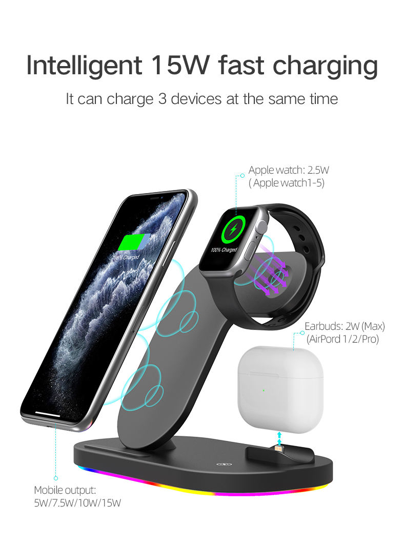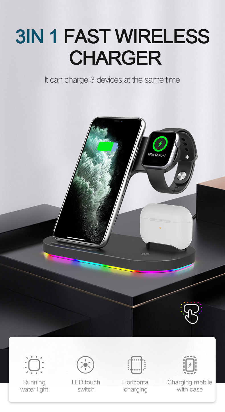 2020 New Phone Accessories For iPhone 12 QI Fast Wireless Charger 3 in 1 5W 7.5W 10W 15W Mobile Phone Wireless Charger
