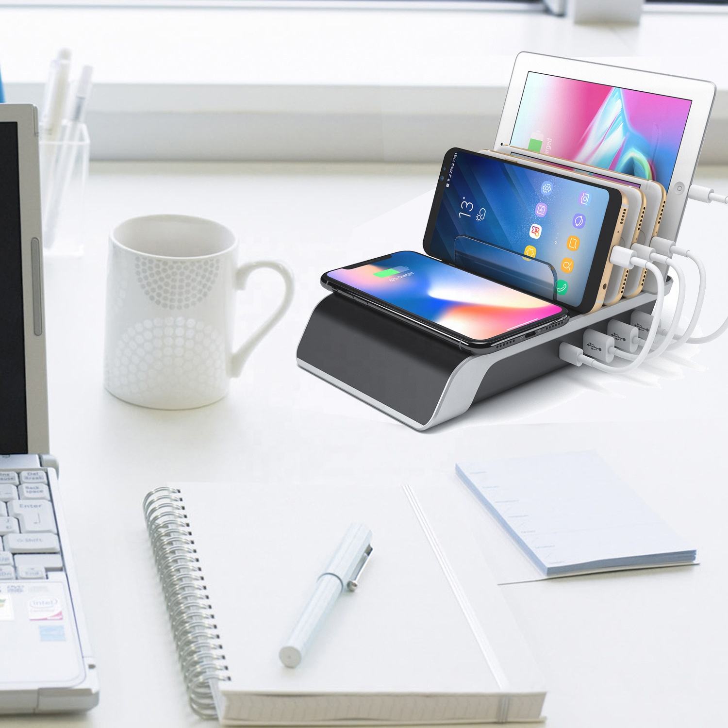 2024 Top Sales 4 Port Fast Charger Adapter 10W Wireless Charging Station for Mobile Phone Tablet Accessories Wireless Charger
