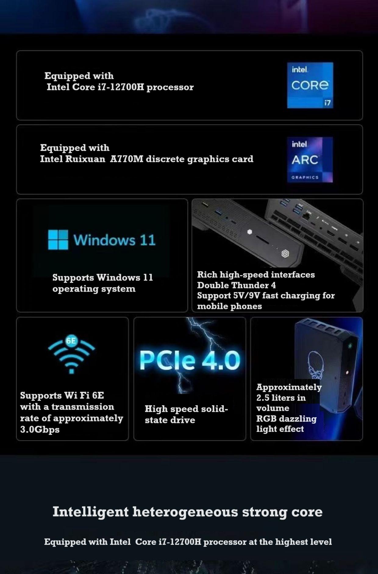 2024 new NUC12SNKI7 Viper Canyon i7-12700H A770M 16gb GPU Gaming Mini Console Content Creation Computer mini pc