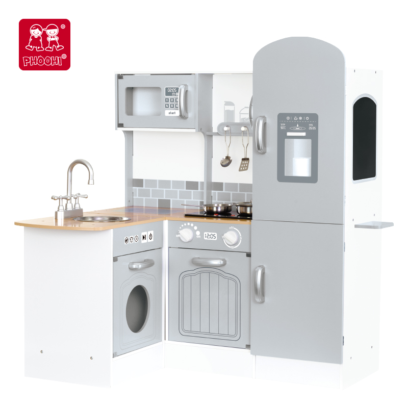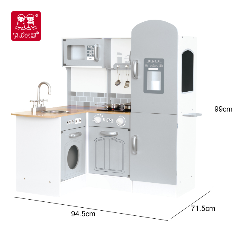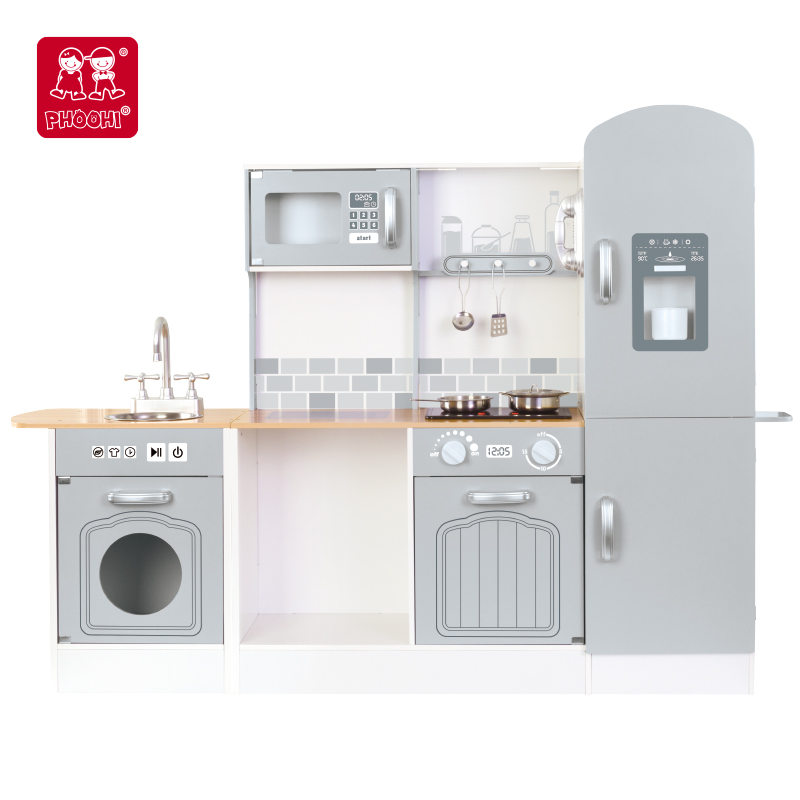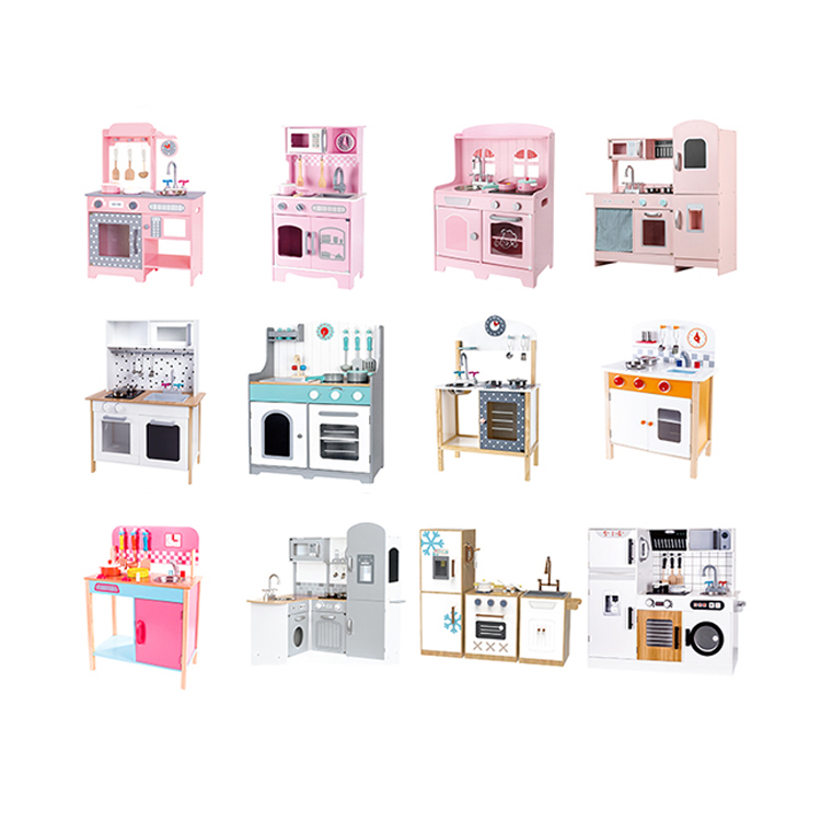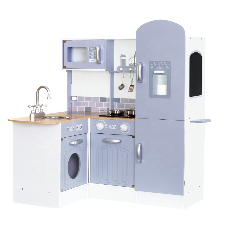Unique Style Children Play Shiftble Big Blue Wooden Kitchen Set Toy For Kids 3+
